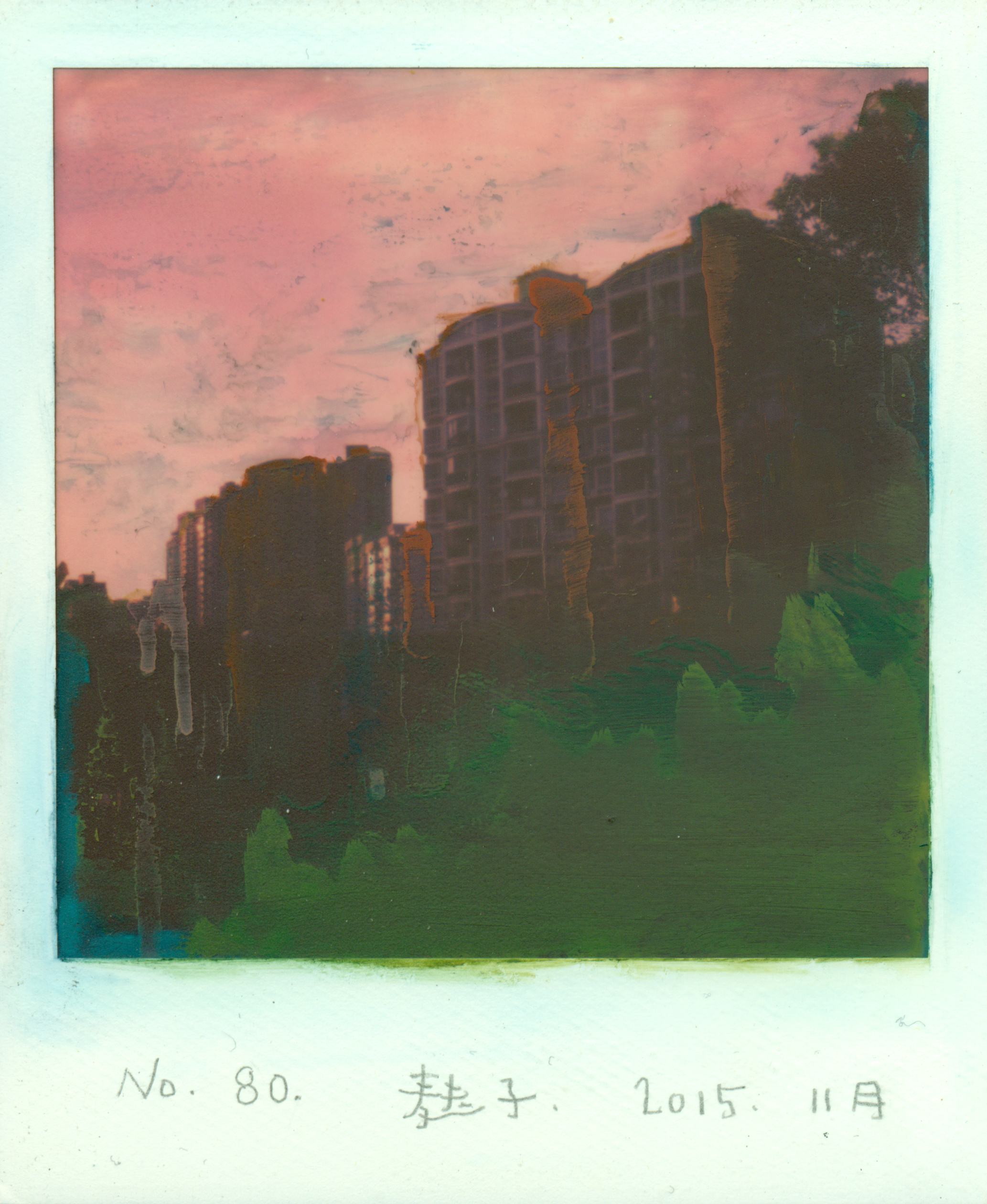 There is one thing in common between Polaroid and watercolour: they are both full of uncertainties. Fuzi’s new technique of Polaroid -painting shows a form of pictorial, private and abstract romanti- cism. His works consist of watercolour painting what would be wasted Polaroid photos. However, Fuzi does not describe those scenes according to the original style of nature, but as the memo- ries of those who have experienced it. In fact, he began purchasing wasted photos from people on the internet to find something new and “get help from others’ eyes”. Thus, Fuzi finds himself facing his own identity and the relationship between him and the original photographer. He has to figure out how to include both perspec- tives while keeping them distinct. Polaroid photography embodies a unique notion of immutability and the concept of “instantaneity”. The element of the painting is applied to add an ambiguous view into the gap between reality and fantasy, offering an approach in- to the world of abstraction and non-linear time.